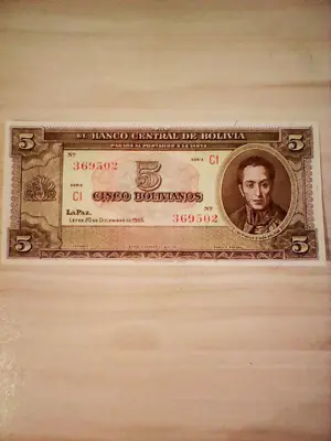 БОЛИВИЯ 5 БОЛИВАНОС 1945 UNC